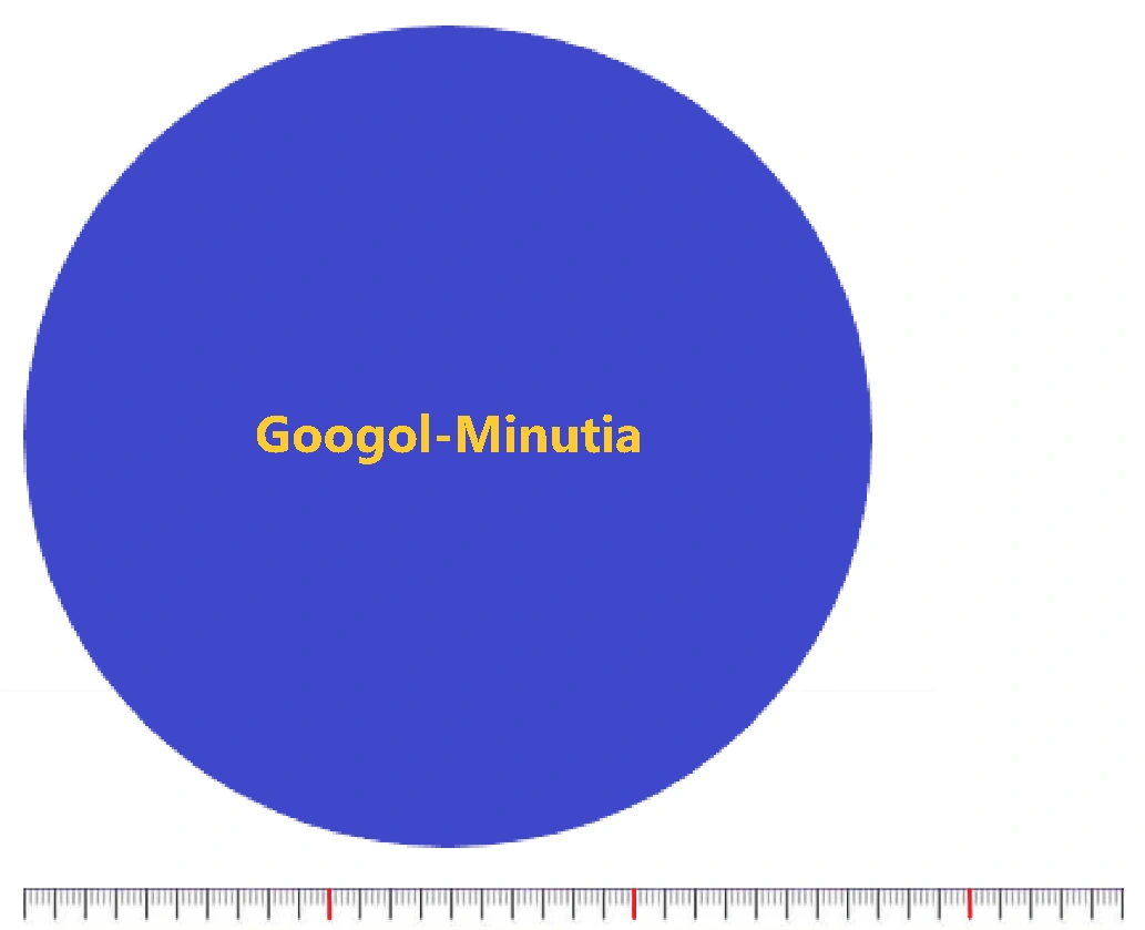 Googol-minutia is equal to \(10^{-100}\) = 1/\(10^{100}\) = \((10^{100})^{-1}\) = 0.000...001 (100 zeroes, including the first one) = E(-100) using Hyper-E notation, or the reciprocal of a googol.[1] The name was coined by Sbiis Saibian. It is the second smallest number name on Saibian's list of ExE numbers after googol-minutia-speck.