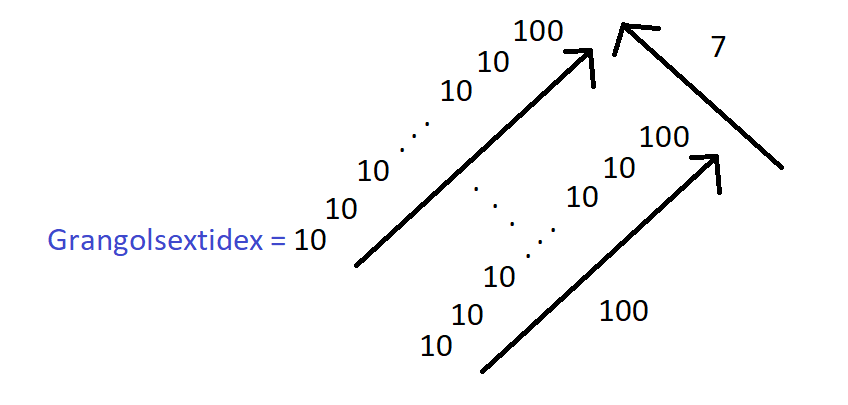 Grangolsextidex is equal to E100#100#7 using Hyper-E notation.[1] The term was coined by Sbiis Saibian. This number belongs to the grangol regiment.