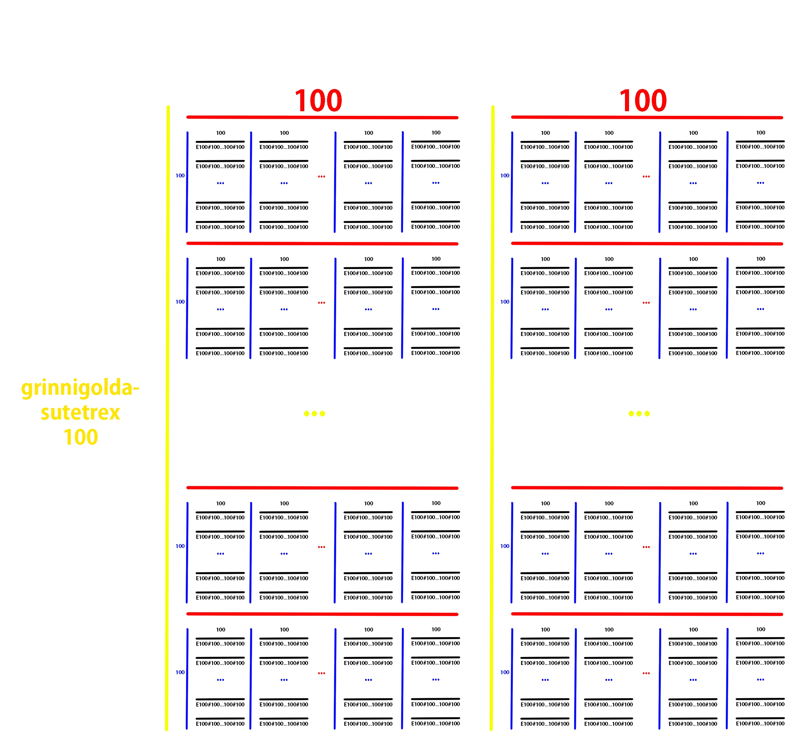 Grinningolda-sutetrex (formerly grinninda-sutetrex) is equal to E100##100#100#100#100#2, using Extended Hyper-E Notation.[1] The term was coined by Sbiis Saibian.
