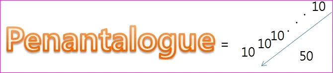 Penantalogue is equal to E1#50, using Hyper-E notation.[1] The term was coined by Sbiis Saibian. In up-arrow notation it can be written \(10 \uparrow\uparrow 50\).