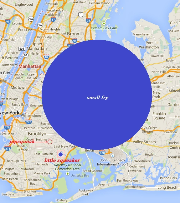 Small fry gallons of water, compared with pipsqueak, little squeaker, and manhattan.[5]