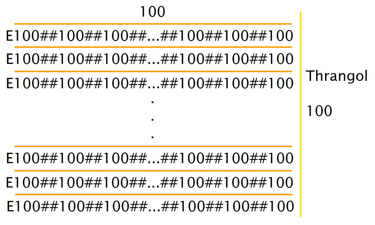 Thrangol (formerly granhoolgol) is equal to E100###100#100 = E100###100##2 in Extended Hyper-E Notation.[1][2] The term was coined by Sbiis Saibian.